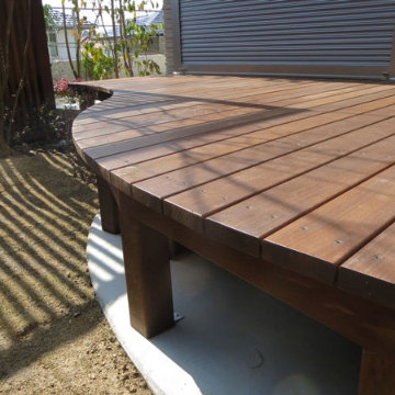 外部空間での天然木の施工は、室内空間の作り方とはまったく違います。ウッドデッキ、ウッドフェンス、パーゴラなど風雨に晒され、より過酷な環境下でも耐えうるにはどういった施工方法が適当であるのか。長年培った実績と経験で、他にはない強靭な施工方法でご提案致します。